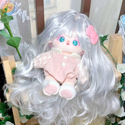 20CM厘米棉花娃娃假发实拍柔软丝银灰色长卷发公仔玩偶女娃假头套