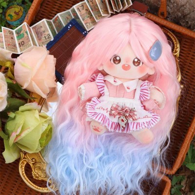 20cm棉花娃娃假发 粉蓝色渐变羊毛卷高温丝长卷发假发头套 厂家
