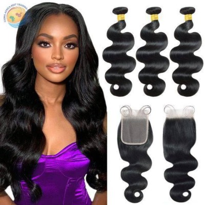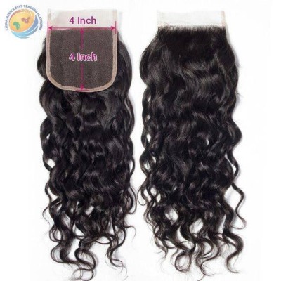 4by4 water wave closure Transparent brown lace hair曲发现货