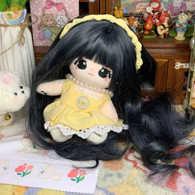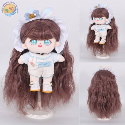 20CM棉花娃娃雾霾蓝灰色长卷发假发娃发人形玩偶公仔头发头套工厂