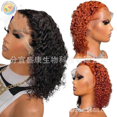 外贸新款假发 欧美小卷齐肩卷发头套非洲女士前蕾丝高温丝假发套