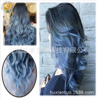欧美流行染色化纤假发女士中分长卷发黑蓝色渐变大波浪胶纸网假发