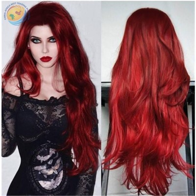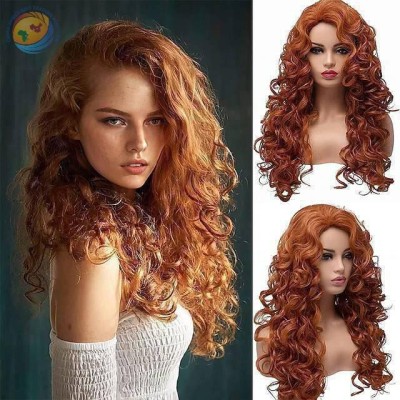 外贸假发女长卷发大波浪酒红色中分长刘海气质cos微卷发头套批发