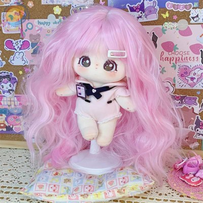20cm棉花娃娃高温丝假发 可爱娃用装扮造型樱花粉色长卷发假头套