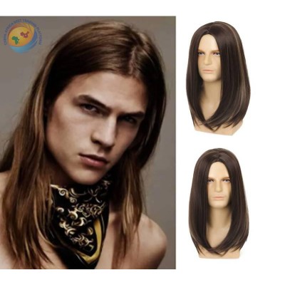 欧美假发男混色挑染棕色bobo波波头长直发内扣梨花中长卷发套批发