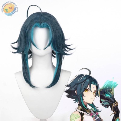 原神 护法夜叉 魈浅色双拼色发际线隆起款 cosplay游戏假发头套