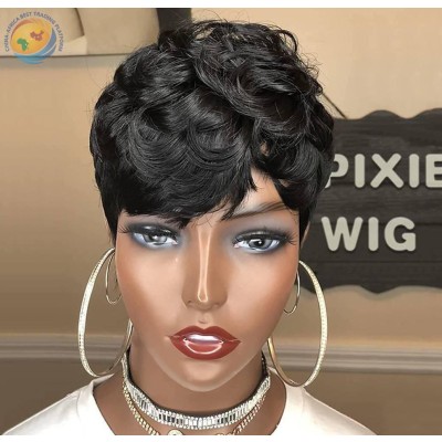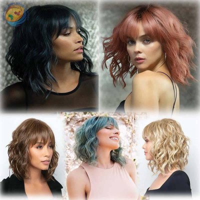 Wig female short bobo head round face Air bangs corn perm black short curly collarbone hair wool roll head cover