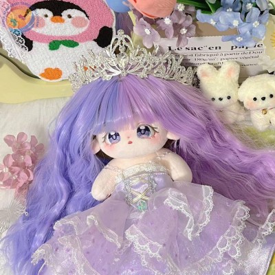 20cm Cotton doll wig with fringe purple-blue gradient long curly hair Doll Princess Doll doll hair set