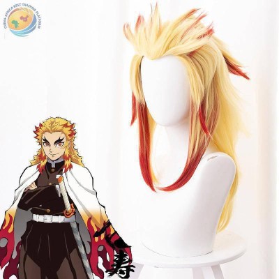 Ghost Exterminator Xingshulang Yellow highlights Red gradual micro curly cos animation wig set in stock