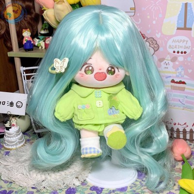 Green wig 20cm cotton doll hair solid color long curly hair doll Princess doll doll hair set shot