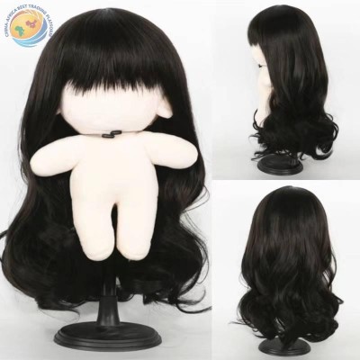 棉花娃娃黑色头发20cm棉花娃娃玩偶装扮高温丝假发卷发发套批发