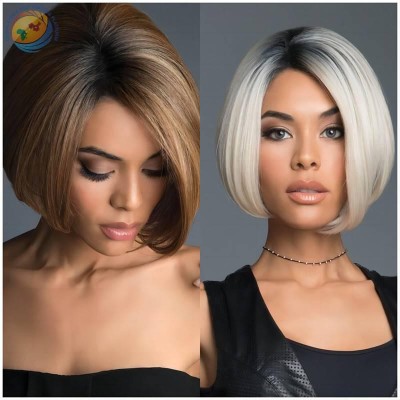 跨境欧美假发 女士时尚渐变色bobo头短直发 高温丝化纤假发头套