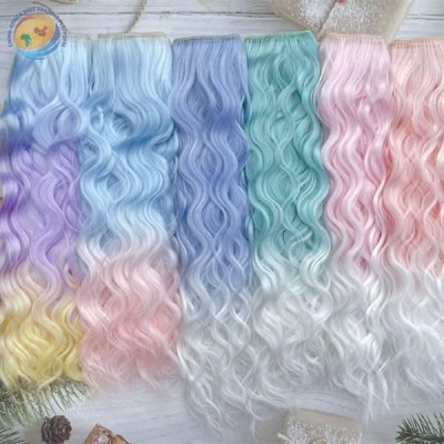 棉花娃娃假发柔软丝发排bjd手工diy娃发高温丝染色渐变长发束帘子