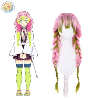 鬼灭之刃cos假发甘露寺蜜璃渐变色麻花辫动漫cosplay粉色长发头套