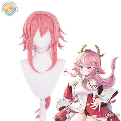 原神 八重神子 cos假发 稻妻城 仿真头皮 两侧反翘 动漫假发头套