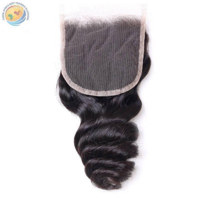 Peruvian human hair 4×4 Lace Closure loose wave真人发块