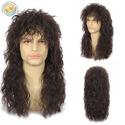 亚马逊新款欧美男士假发80s朋克重金属长卷发 万圣节假发厂家批发