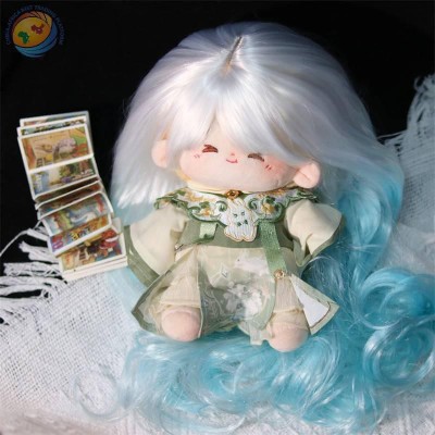 20CM棉花娃娃假发柔软丝白绿色渐变长卷发人形玩偶公仔假头套代发