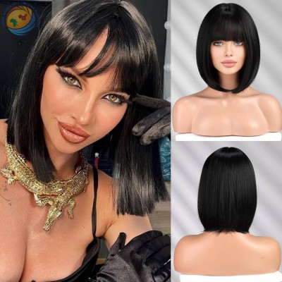 跨境欧美女士bobo头齐刘海短直发原宿风学生发彩色动漫假发套批发