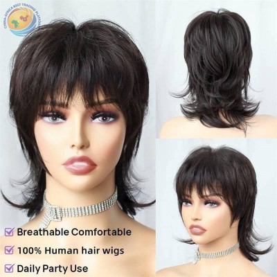 许昌跨境真人发假发头套燕尾款 Pixiecut wig human hair wig