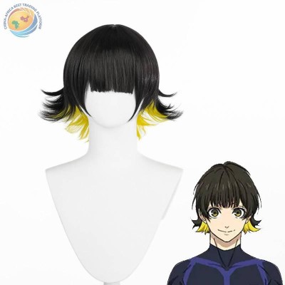 厂家实拍动漫角色蓝色监狱 蜂乐回 cos假发 反翘双拼色造型款假发