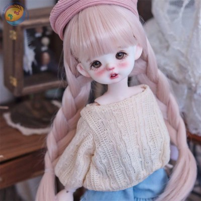 BJD娃娃假发套公仔头SD玩偶假毛小芭比洋娃娃6分双辫粉色头发实拍