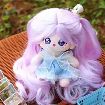 棉花娃娃假发套20cm假发女公仔娃发人形玩偶换装浅紫色长卷发头套