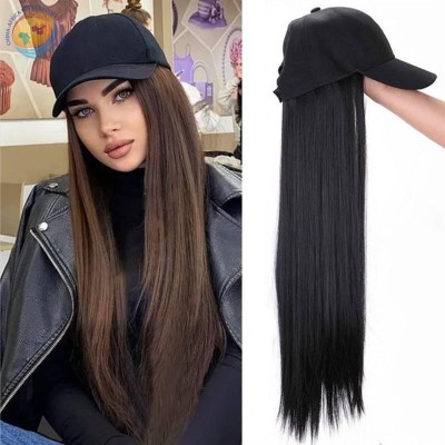 跨境速卖通外贸货源假发女鸭舌帽子长发一体式长直发wigs化纤头套