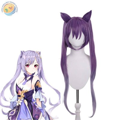 原神 霆霓快雨 刻晴 cosplay假发 带兽耳双马尾渐变猫耳朵造型发