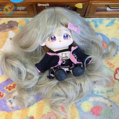 棉花娃娃假发20cm混灰色长卷发换装毛公仔化纤高温丝假毛发套现货