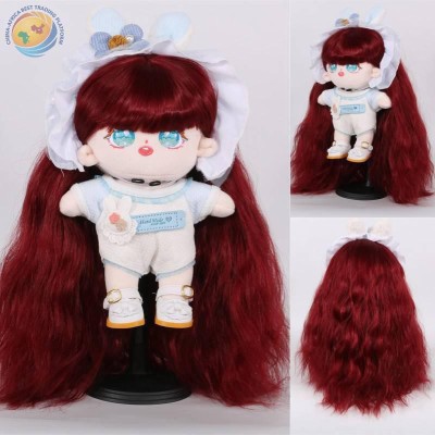 20cm棉花娃娃假发整顶全头套高温丝化纤假发酒红色羊毛卷wig可定