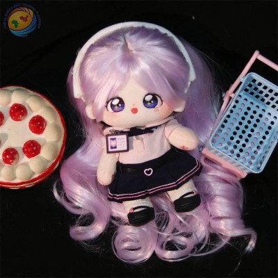 棉花娃娃假发套 20cm柔软丝浅紫色长卷发 人形玩偶公仔假头发女娃