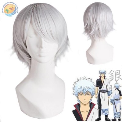 男发短直发银色cos 银魂坂田银时银白蓬松反翘扣子网短发假发头套