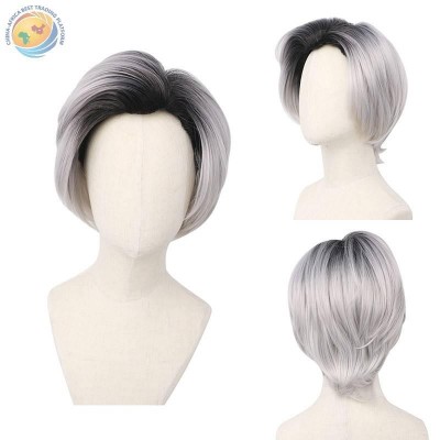 动漫电影后裔2Carlos卡洛斯cosplay挑染白色渐变色高温丝短直发套