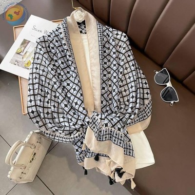 新款夏季防晒丝巾女棉麻民族风围巾外出空调大披肩