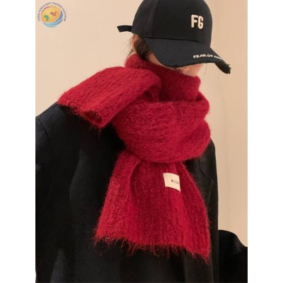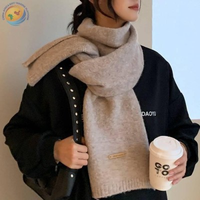 纯色百搭含羊毛围巾保暖披肩毛线针织