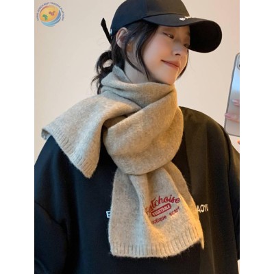 刺绣字母棕色含羊毛针织围巾冬季