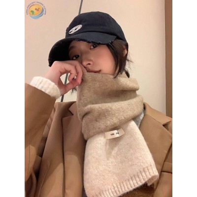 秋冬新款超奶色系针织围巾女冬季百搭
