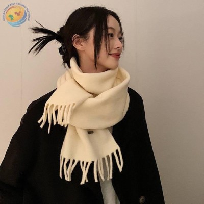 韩国流苏百搭护颈围脖含羊毛米白色小围巾