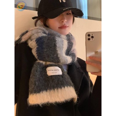 彩色条纹马海毛围巾多巴胺日韩撞色