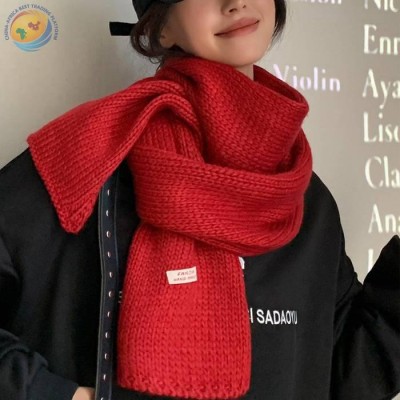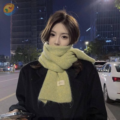 韩版ins绿色针织围巾女冬季贴布纯色学生