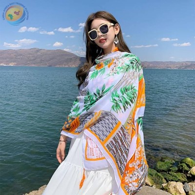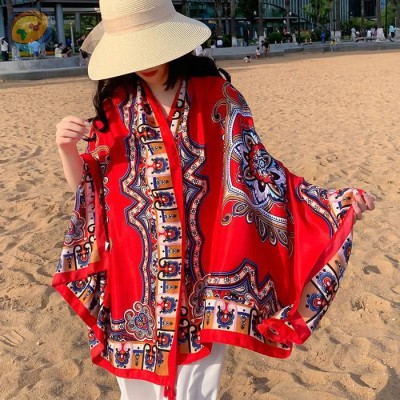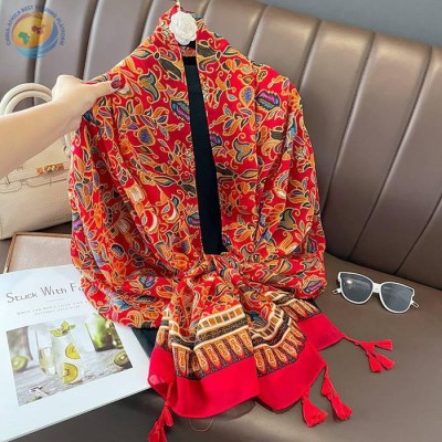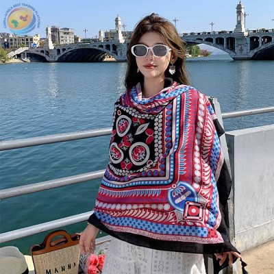 复古珠光宝气旅游防晒丝巾女夏季民族风围巾