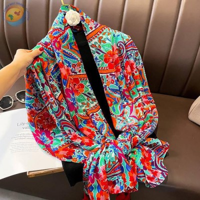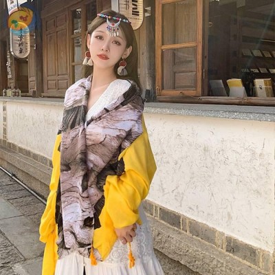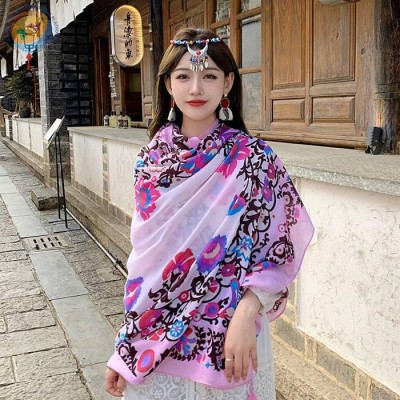 复古花卉防晒披肩女薄款西藏丽江旅游围巾