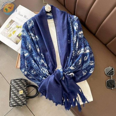 新款印花民族风蓝色系流苏款多功能围巾