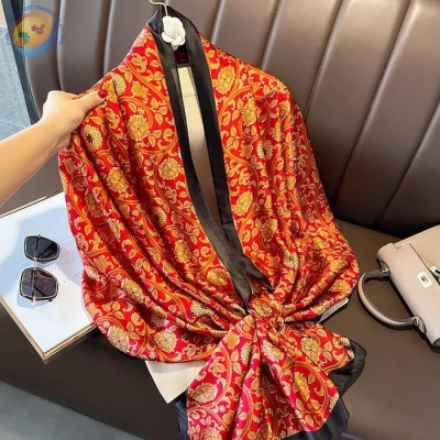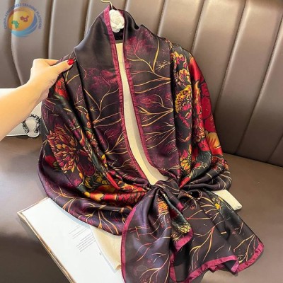 中国风春季花朵轻薄款防晒仿真丝围巾