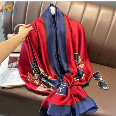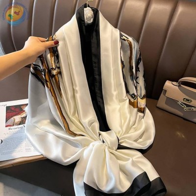 春夏新款气质印花仿真丝领巾围巾穿搭
