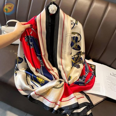 欧式风轻薄款拼色马车仿真丝围巾保暖