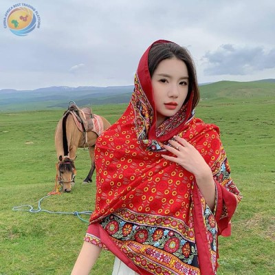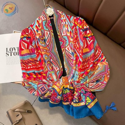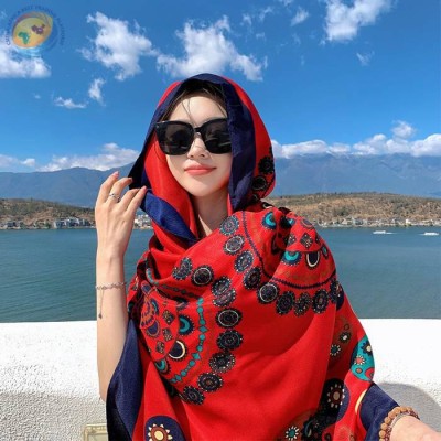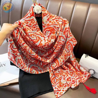 复古红色腰果旅游防晒丝巾女夏季民族风围巾