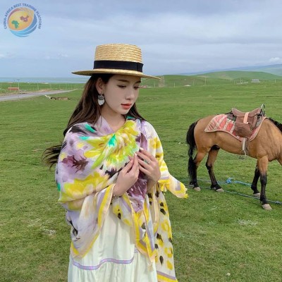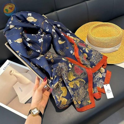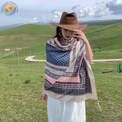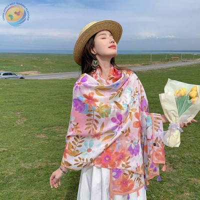 中国风菊花防晒披肩女薄款旅游云南西藏沙漠丝巾