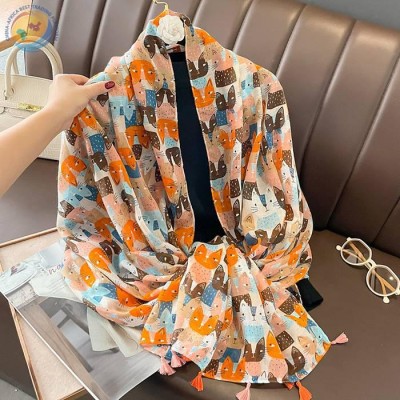 古风印花棉麻围巾女百搭纱巾空调房保暖两用